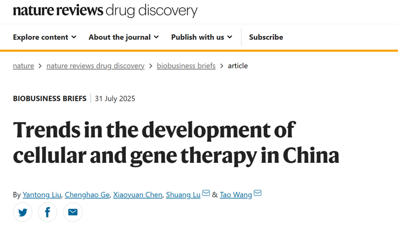 [1]Trends in the development of cellular and gene therapy in China. Nature Reviews Drug Discovery. 2025.https://www.nature.com/articles/d41573-025-00126-7