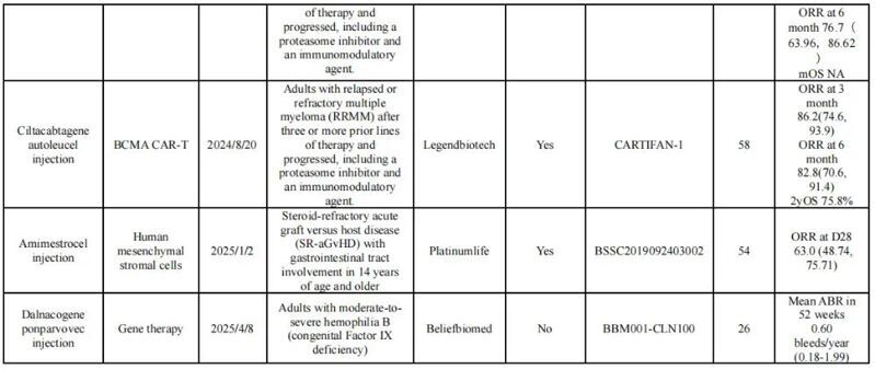 NMPA批准的CGT产品和临床数据总结